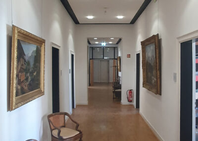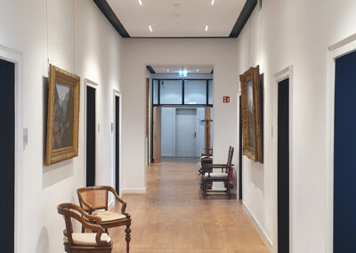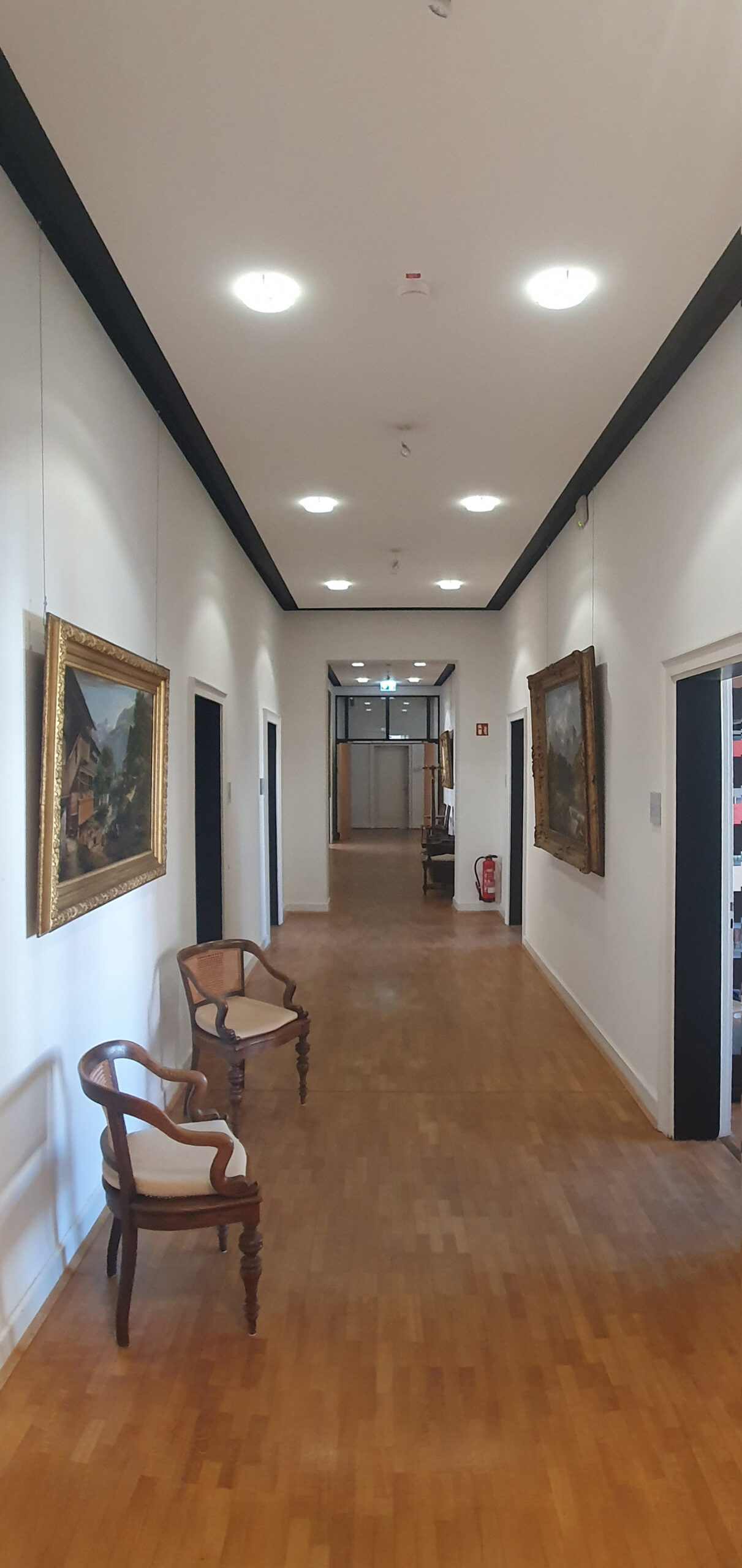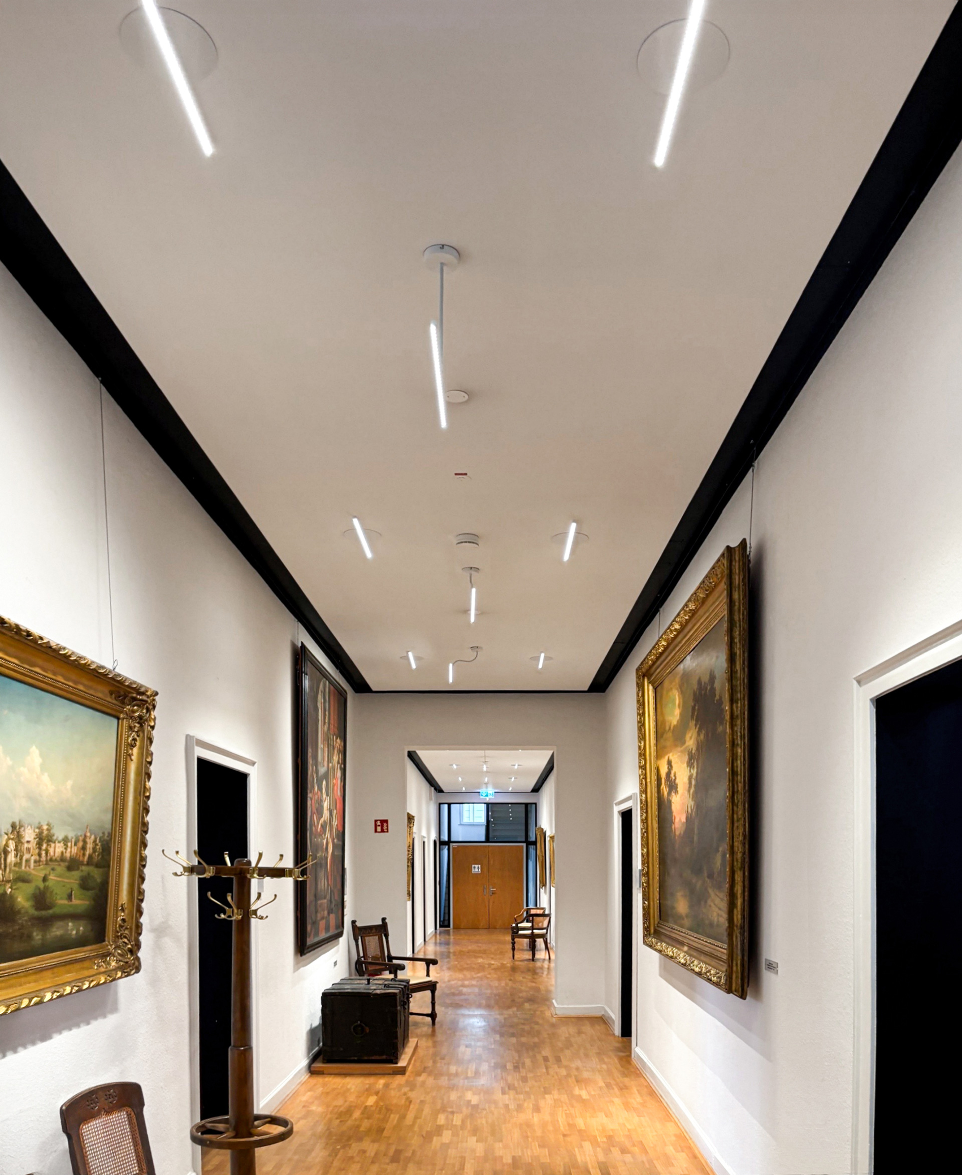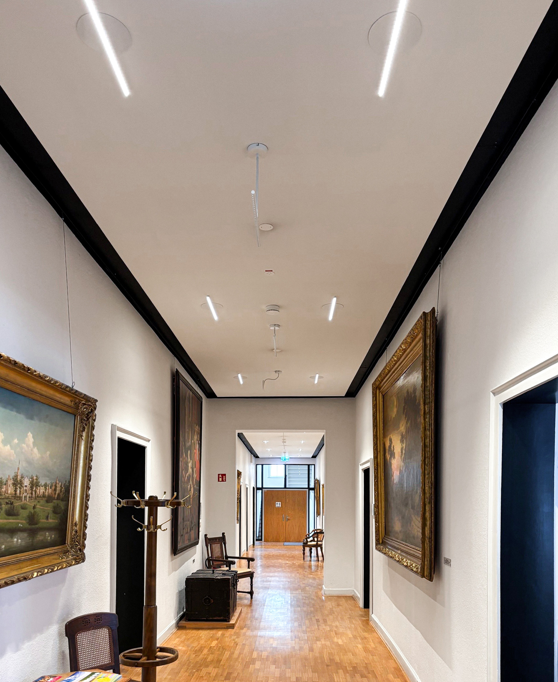 Thanks to the ±20° angle adjustment integrated into the holder and functional accessories such as goosenecks and pendant rods, even the numerous historical paintings in the corridor areas and offices could be optimally illuminated using the world’s smallest wallwasher — the LTwo CC25 Wallwasher in 3000K with a CRI of 94.