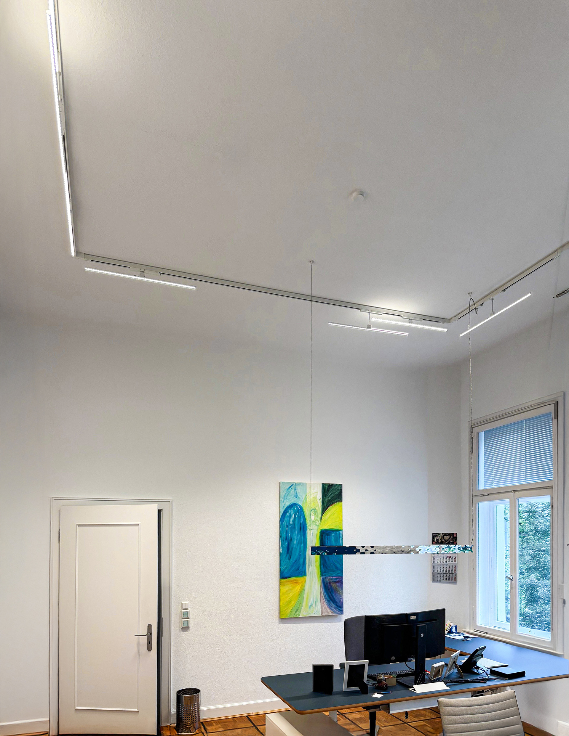 Thanks to the track system and the flexibility of the LTwo lighting system, which allows light modules to be adjusted to different lighting tasks, the client now has the adaptability they desired. As the office layout frequently changes, or spaces are repurposed, the LTwo’s modularity provides maximum freedom. Our unique LTwo light construction kit enables the client to choose from a wide variety of configurations to meet their specific lighting needs.”