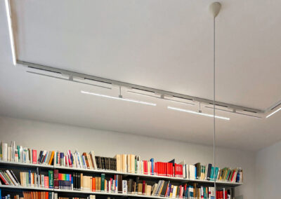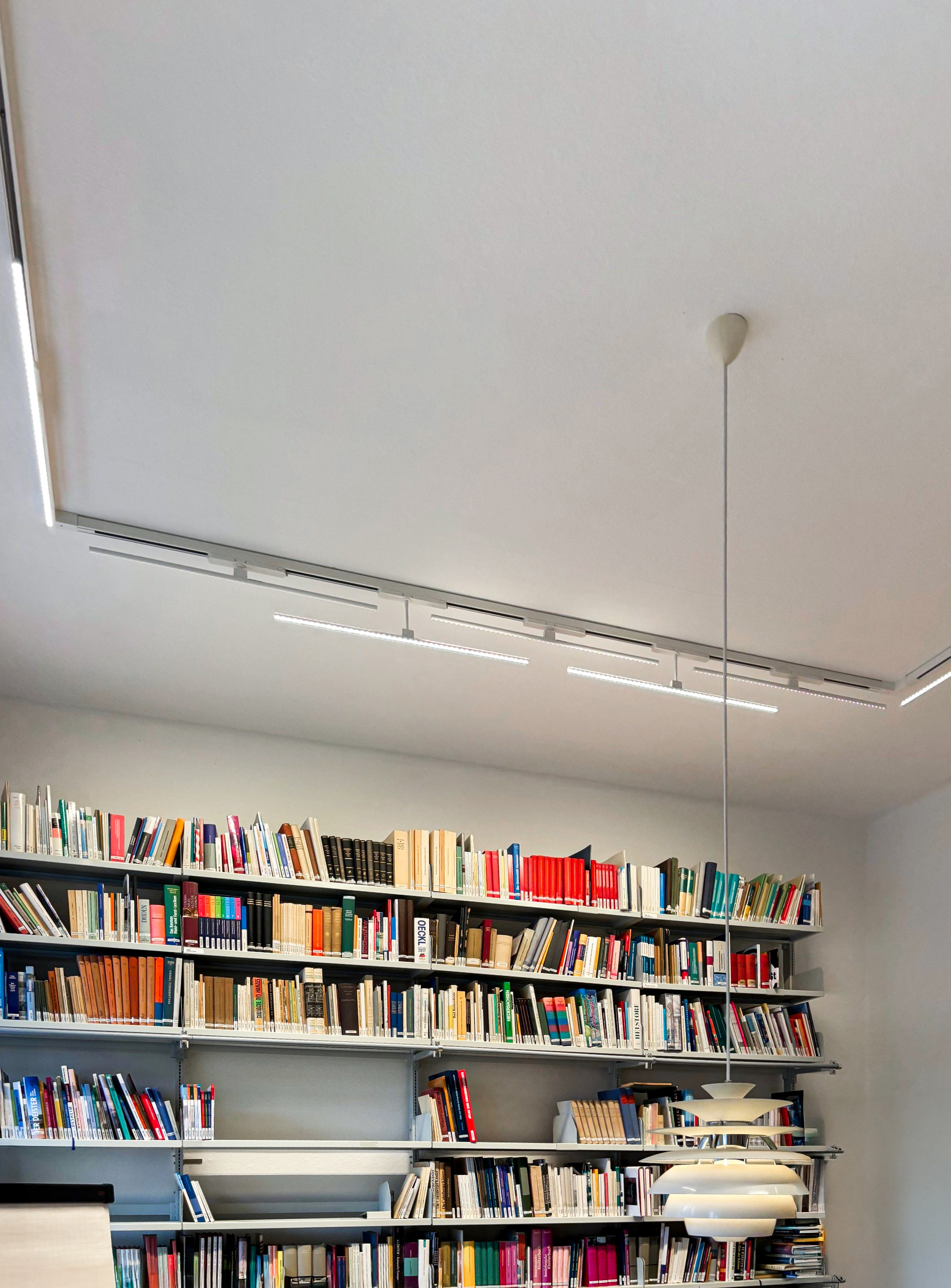 The modern new office lighting — as well as lighting in the conference room, library, laboratory, and workshop — was realized using the Lumami Track System with a track-based power system due to the high concrete ceilings.